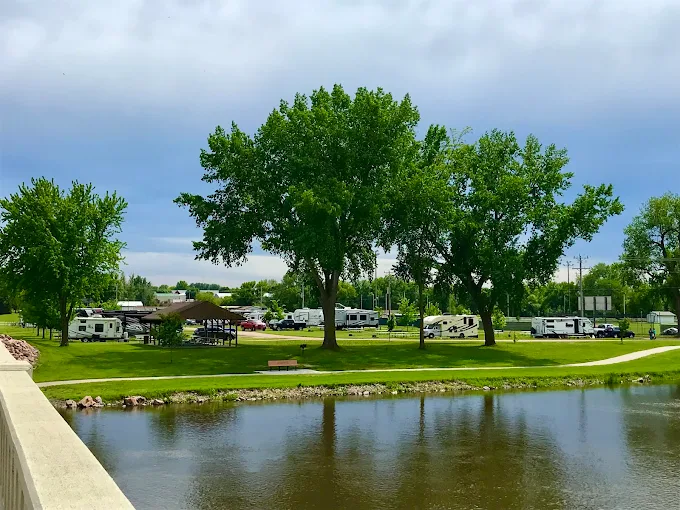 A city-run campground featuring 29 campsites with electric, water, and sewer hookups. Amenities include a shower house, playground, picnic tables, fire rings, and access to a recreational trail with a pedestrian bridge over the Big Sioux River. Within walking distance to historic downtown Dell Rapids.