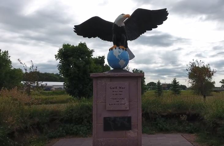The Dell Rapids Veterans Memorial Park honors all Veterans and their families who have served in all five branches of service from the Revolutionary War to the present day. The park features five large quartz rocks with brass medallions representing each military branch, along with memorials for various wars. It's a place of reflection and gratitude, sponsored by American Legion Post #65.